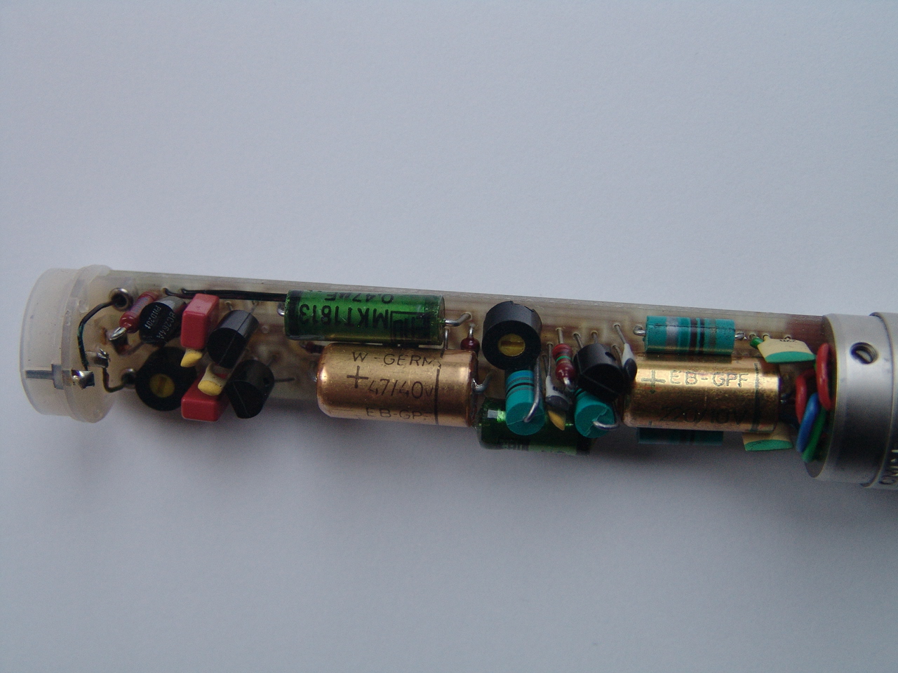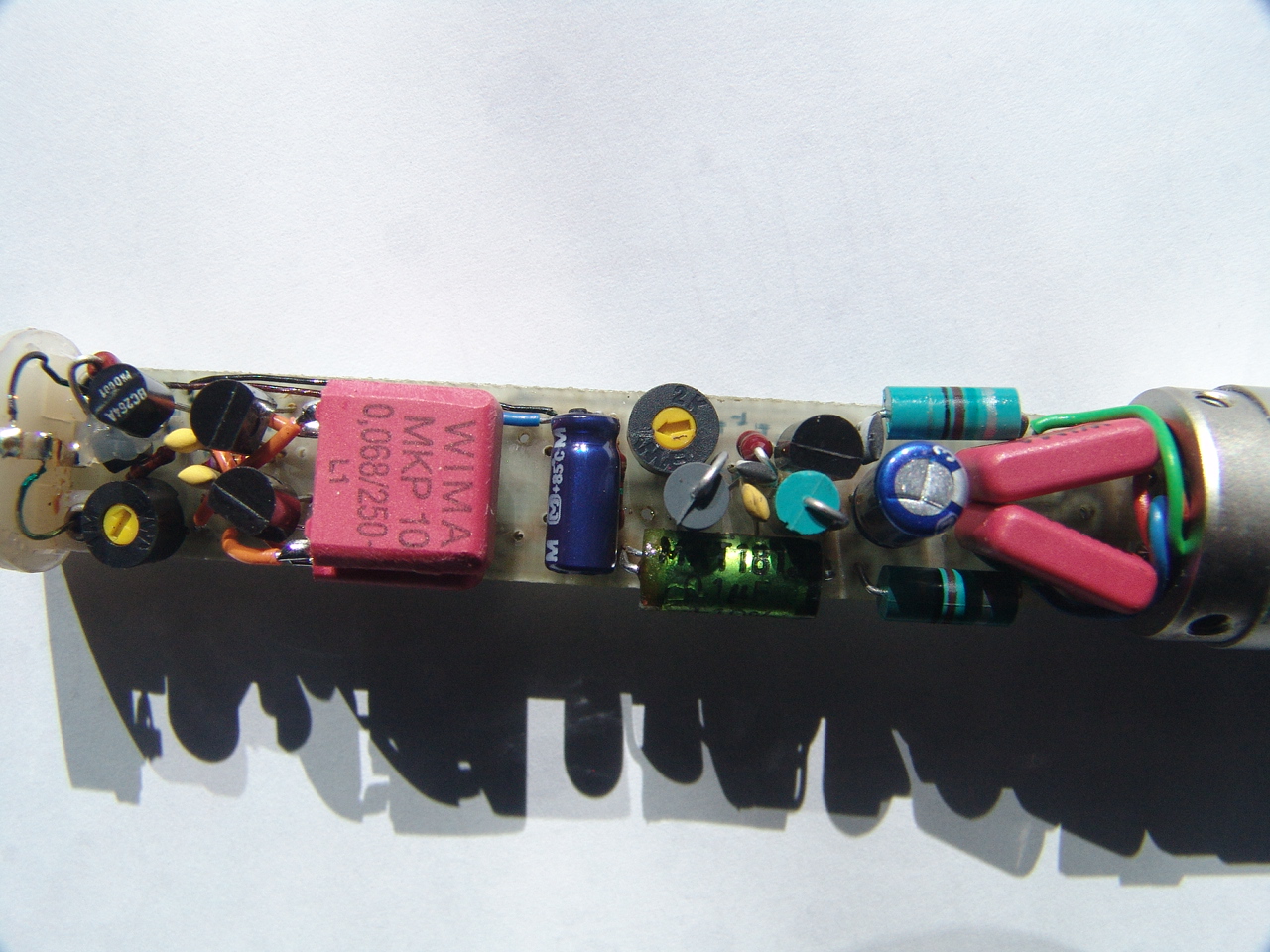 Now some words about the quality of the electronics and modifications I have made to the mics. As related in the pages "Sachem pure" and "school of sound", the so-called “professional” equipment normally is not hi-end in the sound department. The same goes for the electronics inside microphones, mixers, effect-generators, compressors and so on: all these appliances employ electrolytic capacitors in the signal path and if you open a big professional mixer, you’ll be impressed by the complexity of the circuits inside, which have to cater for the tooooo many “noxious" needs of the contemporary sound engineers, who unfortunately are not aware (or have just forgotten) of the existence of the mottos “the simpler, the better” or “what is missing, doesn’t damage the sound and doesn't sound itself”!