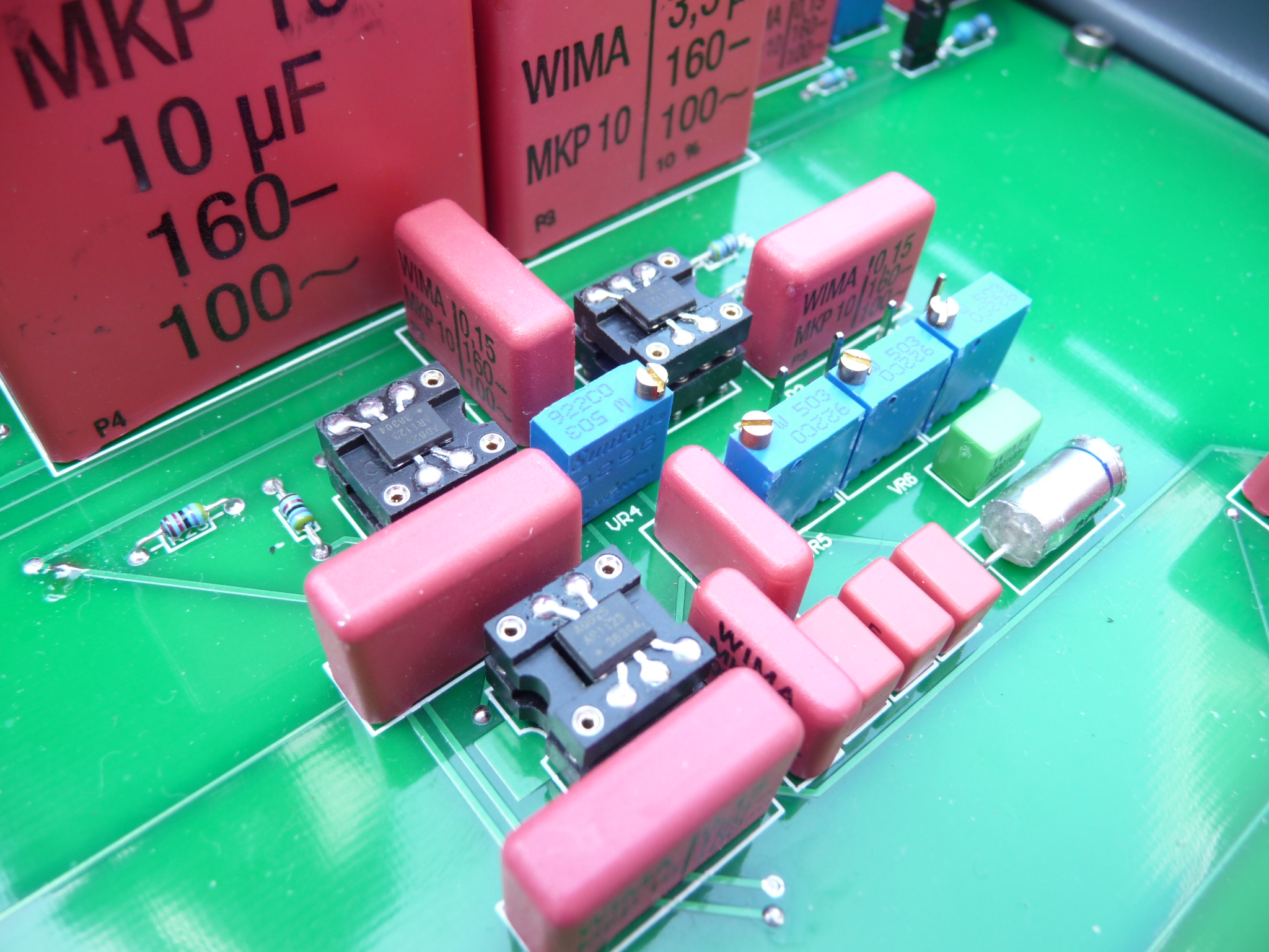 So, in microphones and in professional mixers that don’t use transformers, where a capacitance just above 300nF (0.3 μF) is required, manufacturers usually opt for electrolytic caps, due to their small physical dimensions (and cost). But, sonically speaking, electrolytic caps are the worst possible and they are located in the signal path, becoming a possible cause of harsh sound and harmonics depletion, so, for this reason, I did differently. I started modifying the electronics inside the "bodies" of the microphones, replacing all the electrolytic caps in the signal path, with polypropylene ones (crazy job of micro-soldering, see the photos above) and then I have built the preamp-crossover-mixer unit with the signal path electrolytic-free, and with the same electronic performances of the Sachem pure preamp, which are ... "another planet"! I’m almost sure that, in the recording world, I’m the only one to employ in the signal path, from the mic’s capsule to the digital recorder, only four (less is impossible) very fast, and respectful of the original harmonic contents, Wima MKP10 series, polypropylene capacitors. Furthermore, this unit features only metal-film resistors ±15ppm/°C (very low noise) and tolerance ±0.1%. To finish, for the connection between mics and preamp unit, I use very high-quality microphone screened cables, as short as 5 metres, and for sure this is an additional benefit.