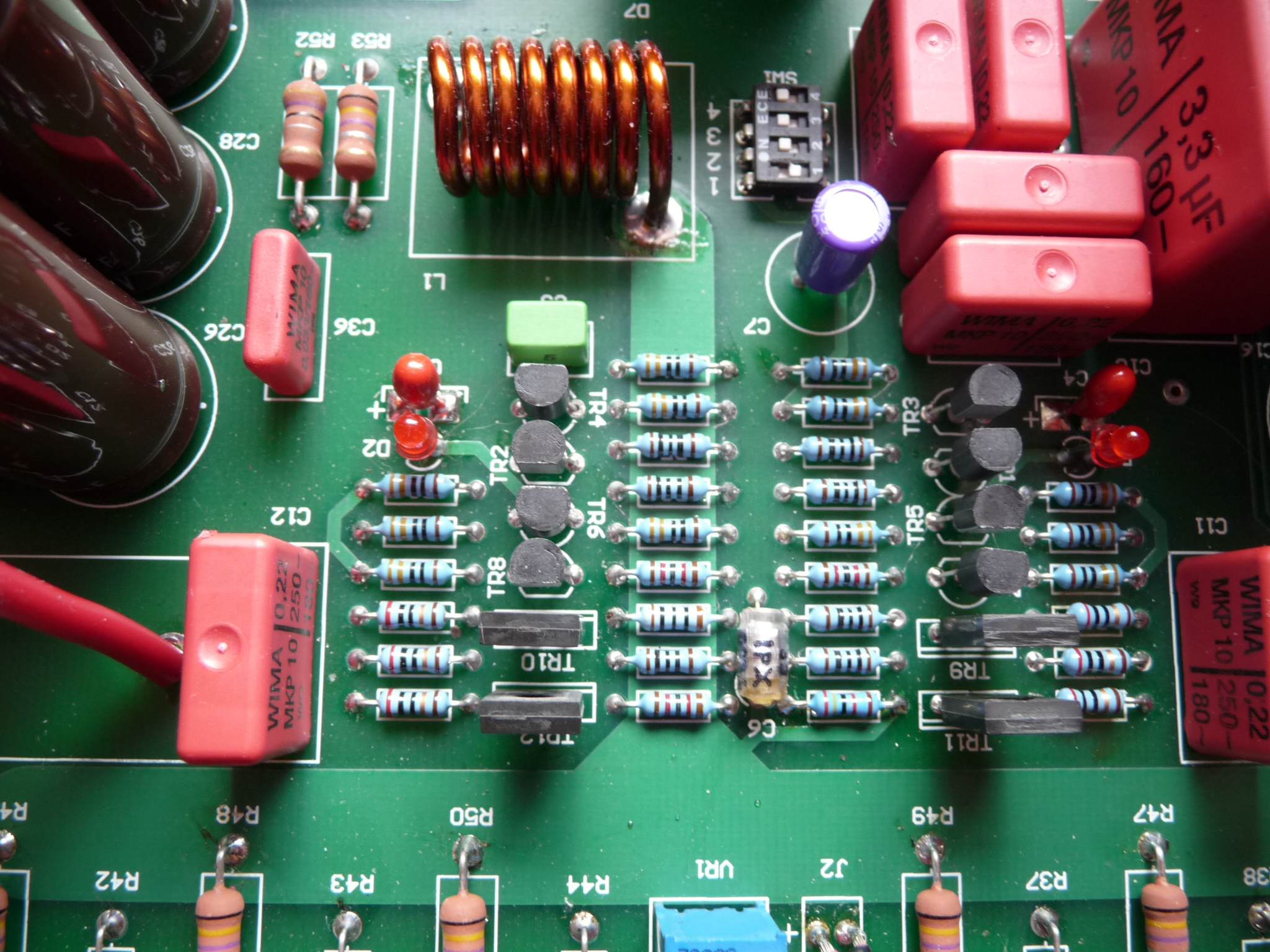 Both preamp and amp units feature only polypropylene capacitors in the signal path, and as few as possible. The use of polypropylene capacitors is of paramount importance to obtain a sweet and mellow sound, like a tube amp, but without the dirtiness of the tubes and ... much faster indeed.