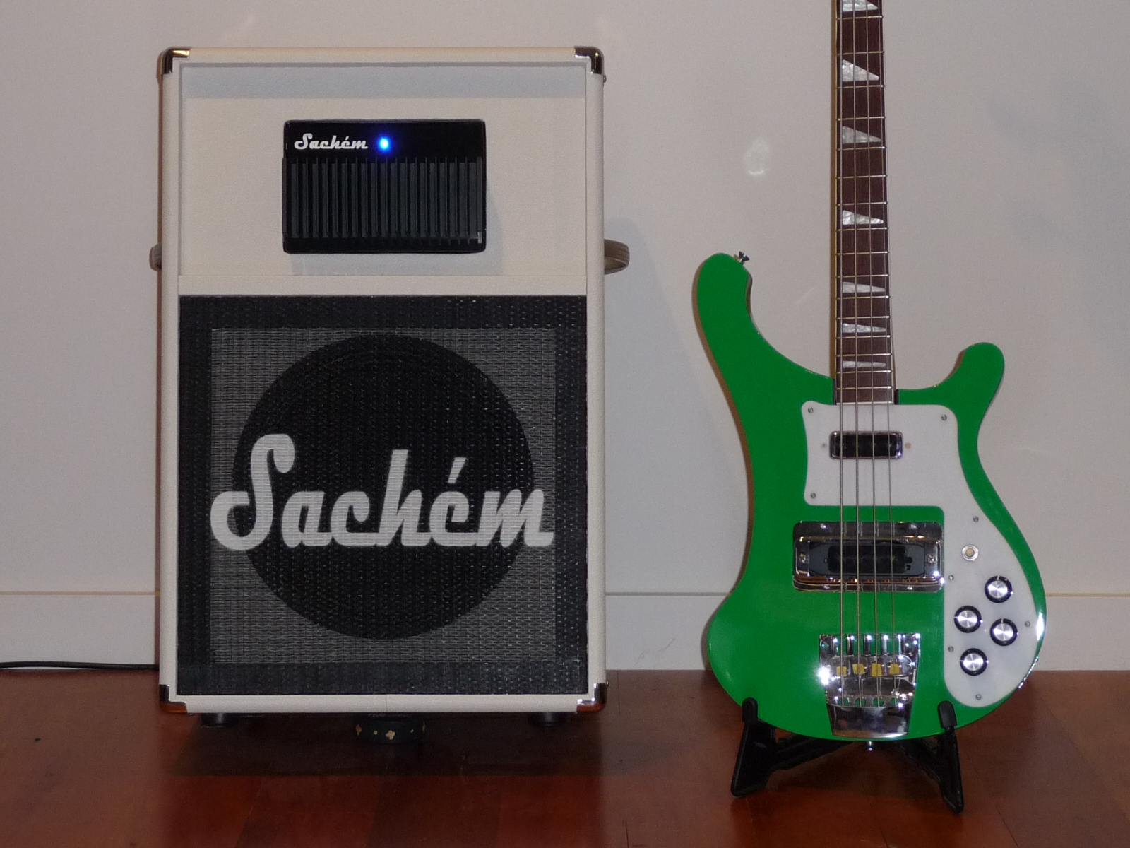 On the back panel of the amplifier unit, you find two sockets (jack 6.5 mm) marked IN and OUT. The IN socket could be used to connect an external, different preamp (if desired), but its main use is to receive the signal from the OUT socket of another Sachem Guitar combo, in order to connect in cascade as many combos as you need.