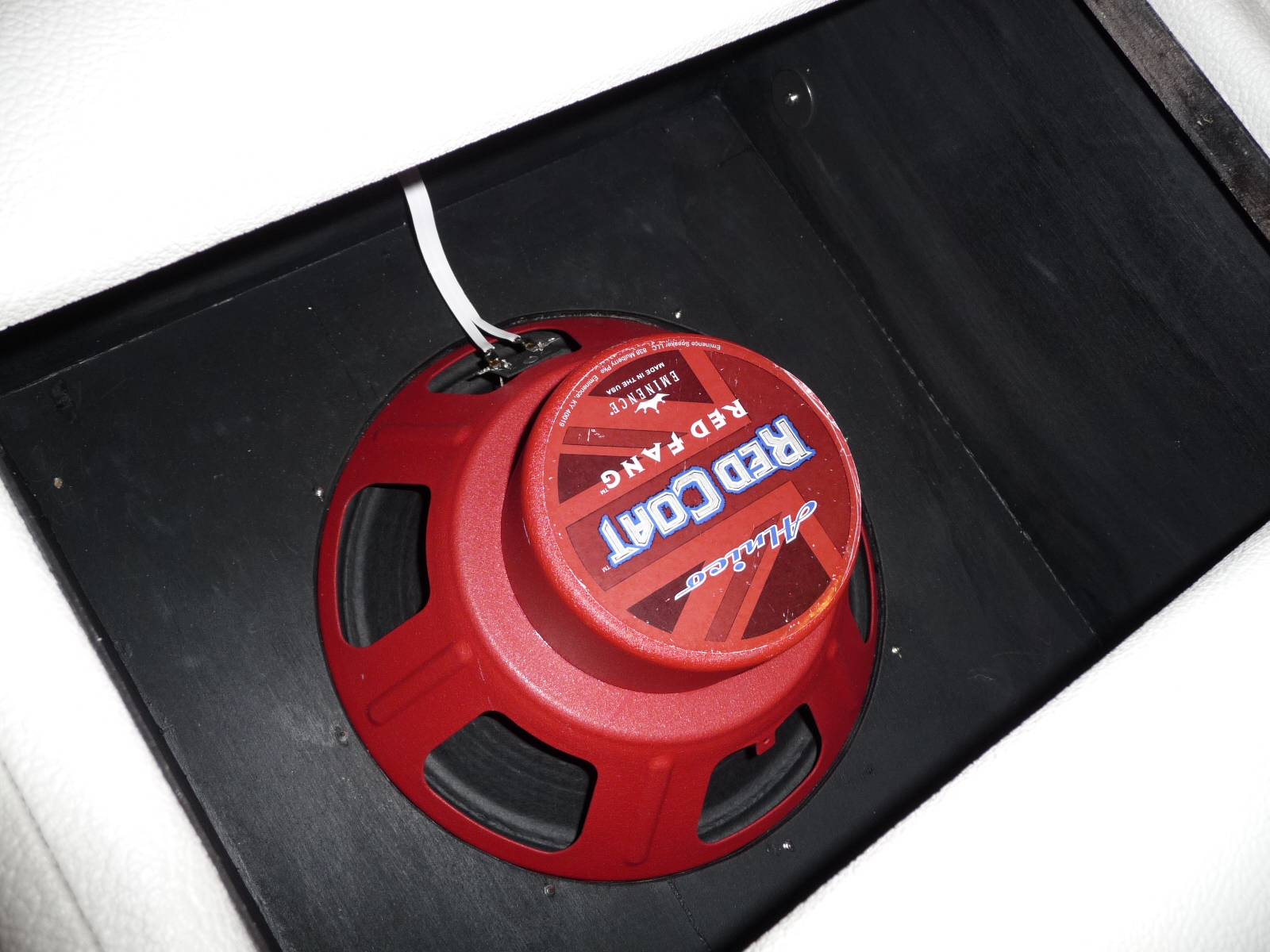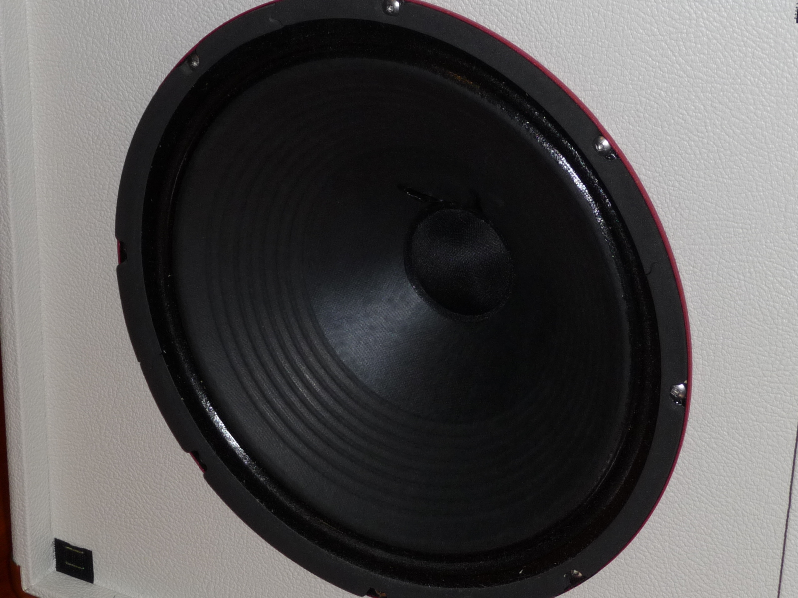 The loudspeaker is the much acclaimed Eminence Red Fang 12", which features a large AlnicoV magnet. It provides "vintage British sound" timbre, see here. If this loudspeaker doesn't meet your musical needs, we will replace it with any 12" driver you may prefer.
