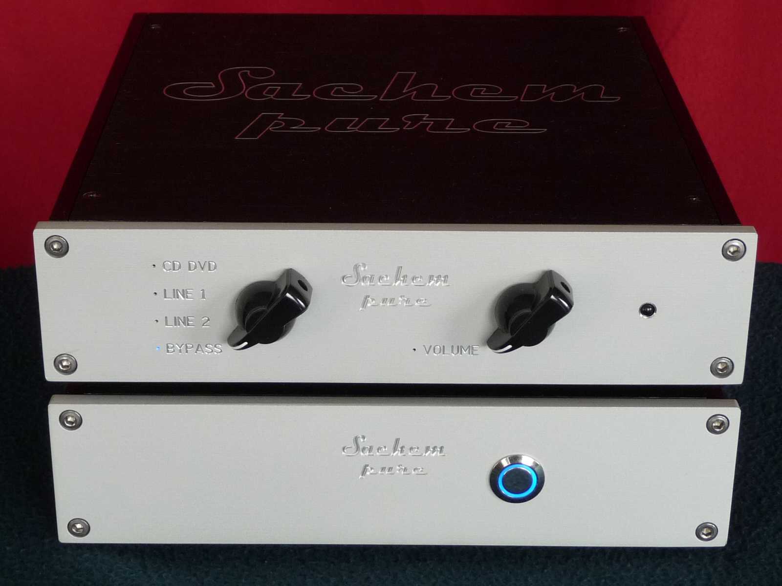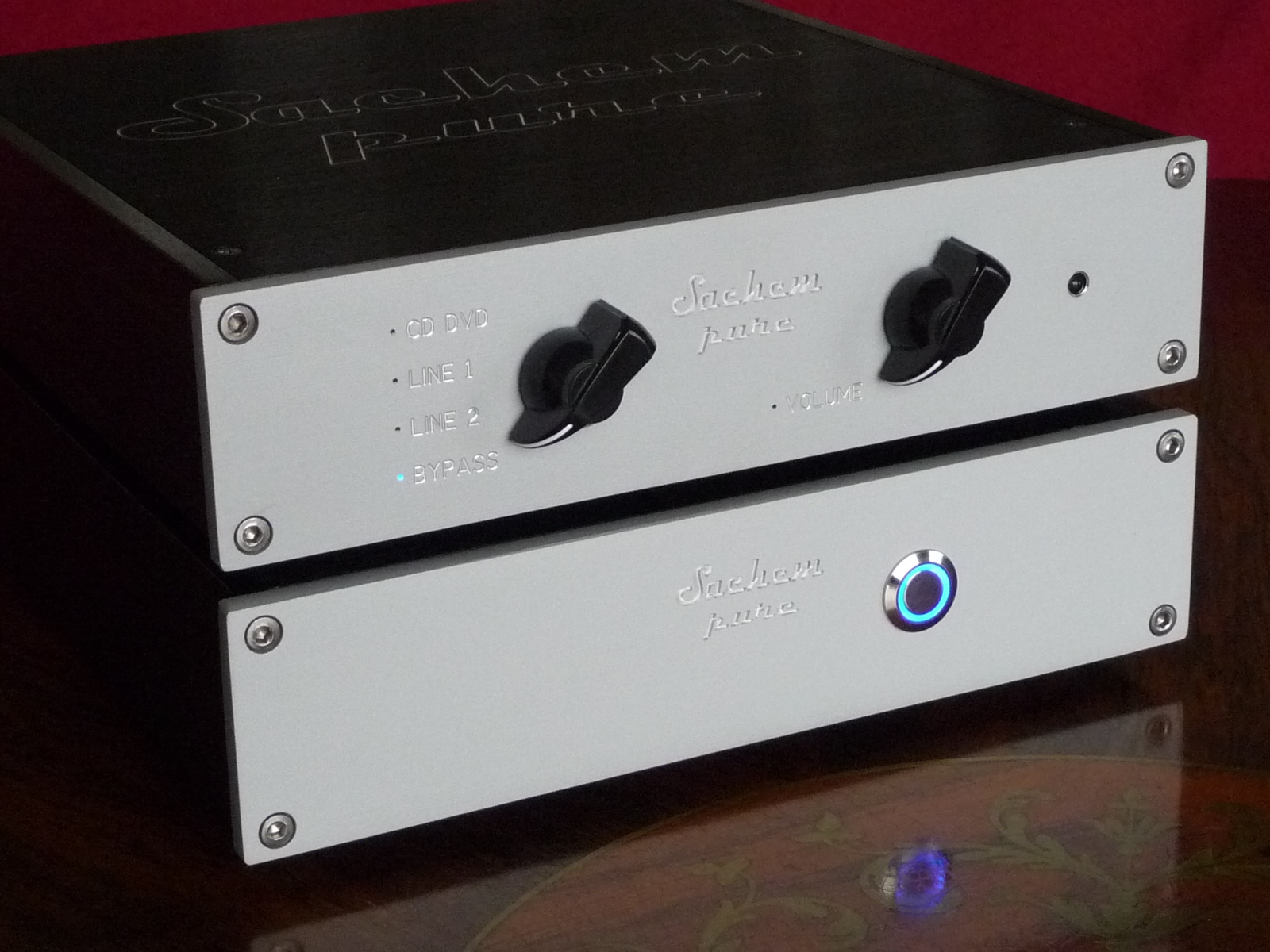 For example, there are those with a serious home-theatre system made up of a 5.1 receiver - a high-end stereo amplifier (or better two mono-blocks), driven by the receiver’s PREAMP OUT, for the front channels - two high quality main speakers - top sub(s) - centre and rear speakers driven by the amps of the receiver. When they want to listen to stereo CDs, they select STEREO mode, on the receiver, but the quality of the preamp section in such receivers is commonly not high-end. Practically, the weak link is the preamp, which is good and more than acceptable for home-theatre use, but not for hi-end stereo. Now, finally, they can solve the problem using a Sachem pure.